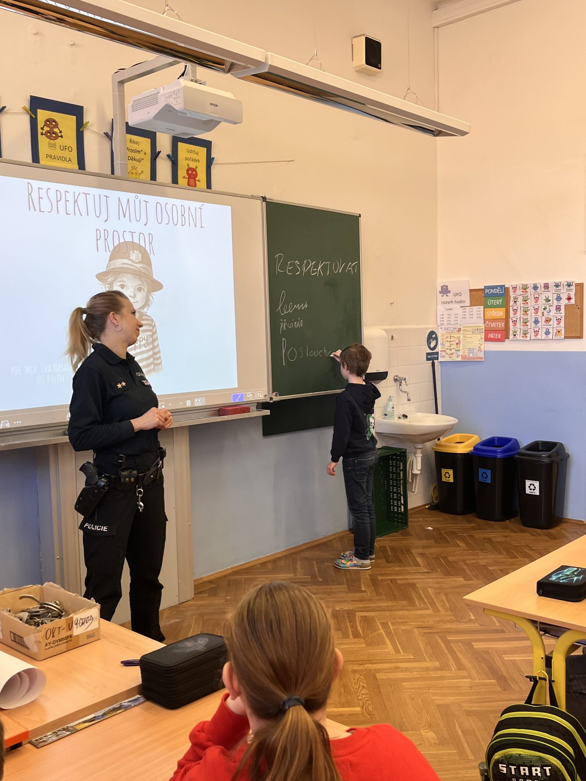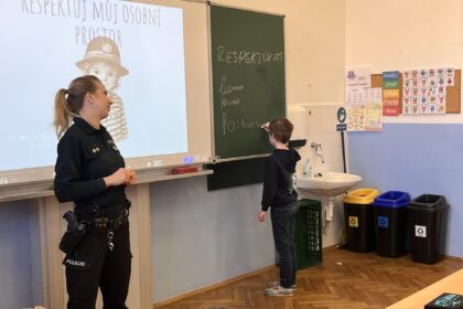 V úterý 24. 2. a ve středu 25. 2. proběhly na prvním stupni naší školy přednášky organizované Policií ČR na téma „Respektuj osobní prostor“. Program byl určen žákům všech tříd prvního stupně a setkal se s velkým zájmem. Policistka Iva Nasadošová dětem srozumitelnou a interaktivní formou vysvětlila, co znamená osobní prostor a proč je důležité jej respektovat.