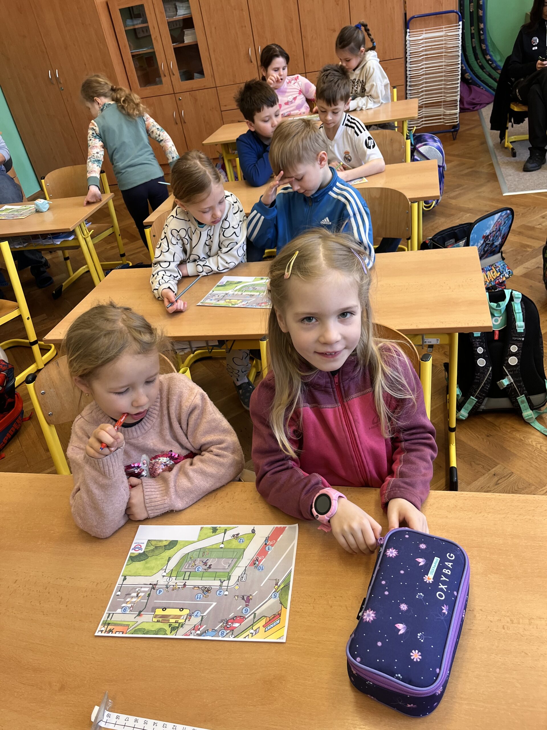 V minulém týdnu si naši prvňáčci se strážníky z Městské policie Kolín připomněli, jak se bezpečně chovat na cestě do školy. Společně si zopakovali pravidla přecházení silnice i význam reflexních prvků, které je chrání za snížené viditelnosti.
