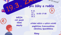 Z organizačních důvodů se tento čtvrtek 19. 3. nebude konat akce Zažij jazyky jinak. Nový termín akce bude upřesněn. Děkujeme za pochopení.