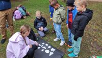 Děti z 1. B vyměnily 3. října na celé dopoledne školní lavice za podzimem zbarvený a vonící lesopark Borky. Celé dopoledne se aktivně hýbaly a prostřednictvím připravených aktivit zdokonalovaly smysly, pozornost i paměť. Nejprve hledaly části podzimních obrázků, aby je následně poskládaly. Zahrály si pohybovou hru s říkankou, pátraly po kartičkách, počítaly předměty na nich